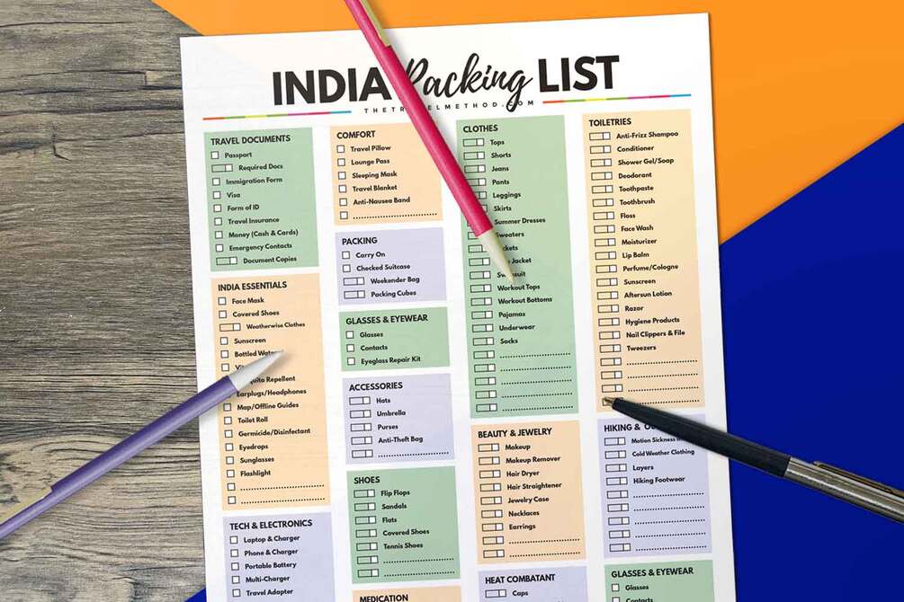 India Packing List Printable by The Travel Method